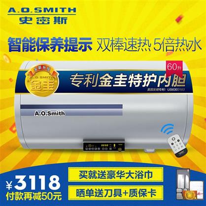 主體品牌史密斯(A.O.Smith)型號60X4電熱水器規(guī)格款式橫式(電)控制方式微電腦式類別儲水式加熱方式電熱管加熱能效等級1級內(nèi)膽材質(zhì)金圭內(nèi)膽加熱體材質(zhì)電熱絲防水等級IPX4規(guī)格參數(shù)水溫調(diào)節(jié)支持峰谷節(jié)能支持預(yù)約功能支持適用人數(shù)2-3人是否可浴室安裝是操作方式觸控式上市時間2017.2商品名稱A.O.史密斯60X4儲水式電熱水器60L熱水器類型電熱水器功率2000/3000瓦特外形尺寸Φ424×877毫米額定電壓220伏特凈重26千克容積60升